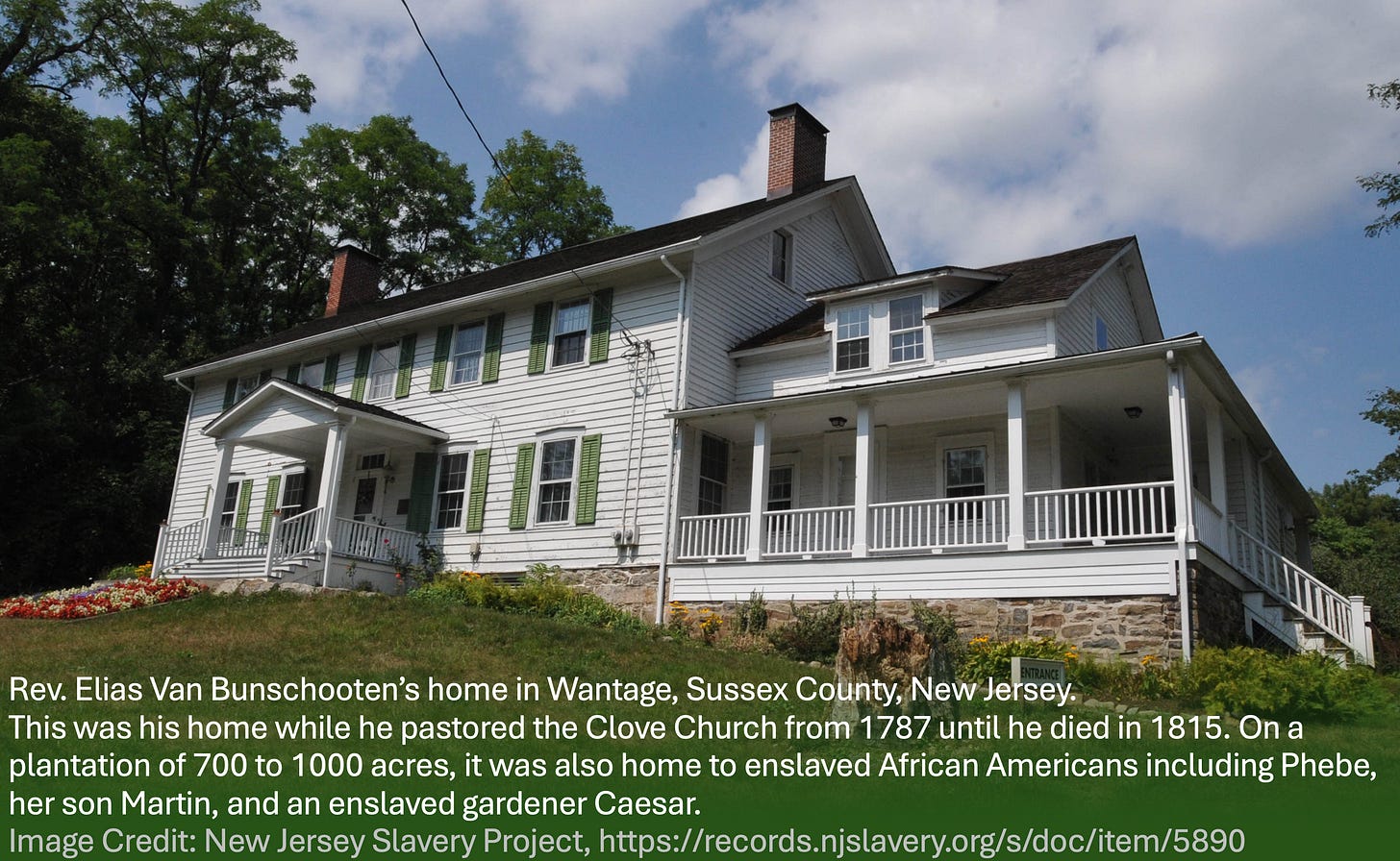 The largest and core endowment gift to NBTS came from the Reformed minister Elias Van Bunschooten and he made sure everyone at the seminary and throughout the Reformed Church knew about it. His total giving in 1814 and at his death in 1815 totaled $17,600, a fortune at the time and more than three times the donation that was made by Colonel Henry Rutgers to the college which was renamed after him. The Van Bunschooten bequest was the product of multiple generations of Dutch and American landholders who enslaved Africans and African Americans, profiting wildly from their labor. And, Elias did not only inherit the money derived from slavery, but also inherited people that his family owned. A county record recently discovered through the research of Dr. Jesse Bayker shows that Elias himself still claimed as enslaved a young boy named Martin who was born after 1804 when the misleadingly-named gradual abolition law in New Jersey supposedly ended the practice of children being born into enslavement. And the same document names the minister’s claim of ownership over Martin’s mother, Phoebe.