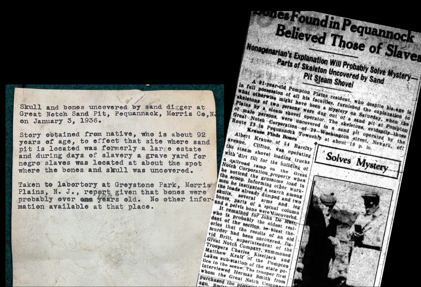 The human remains had been accidentally dug up in Pequannock in 1936 and were brought to the university in New Brunswick shortly thereafter. Local residents at the time of disinterment testified that the disturbed lands were where the DeMott family, prominent in the community and the local Reformed church, had buried the people they enslaved. These findings were substantially corroborated through records establishing evidence for the ownership of the land, and archival research in deeds, wills, censuses, birth, death, and marriage, and baptismal records identified a number of possible African American individuals.